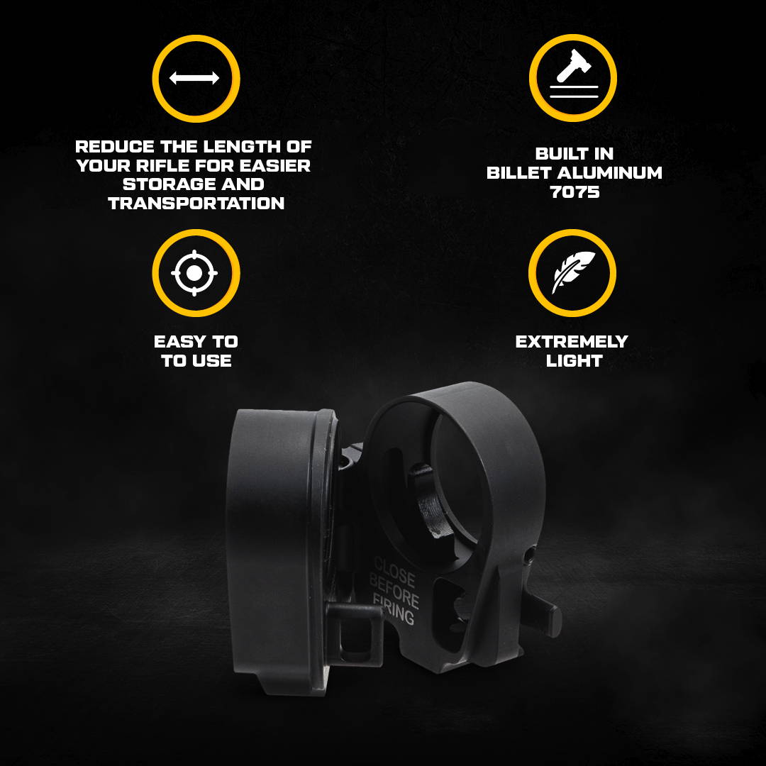 The Folding Stock Adapter is designed to be compatible with a wide range of AR-15 and AR-10 rifle setups. Whether you run a direct impingement or piston gun, this AR folding stock adapter will work, allowing you to build an extremely compact rifle for storage or transportation.
