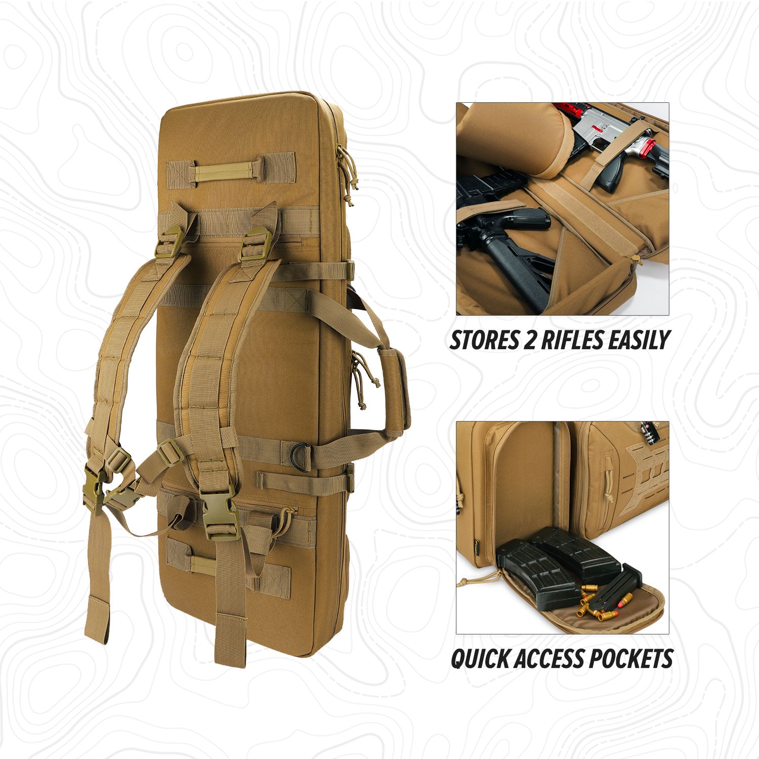 ⚙️ Refined & Functional Design: Double rifle case with more refined design, multiple compartments inside and out provide storage for just about anything you’ll want to carry.