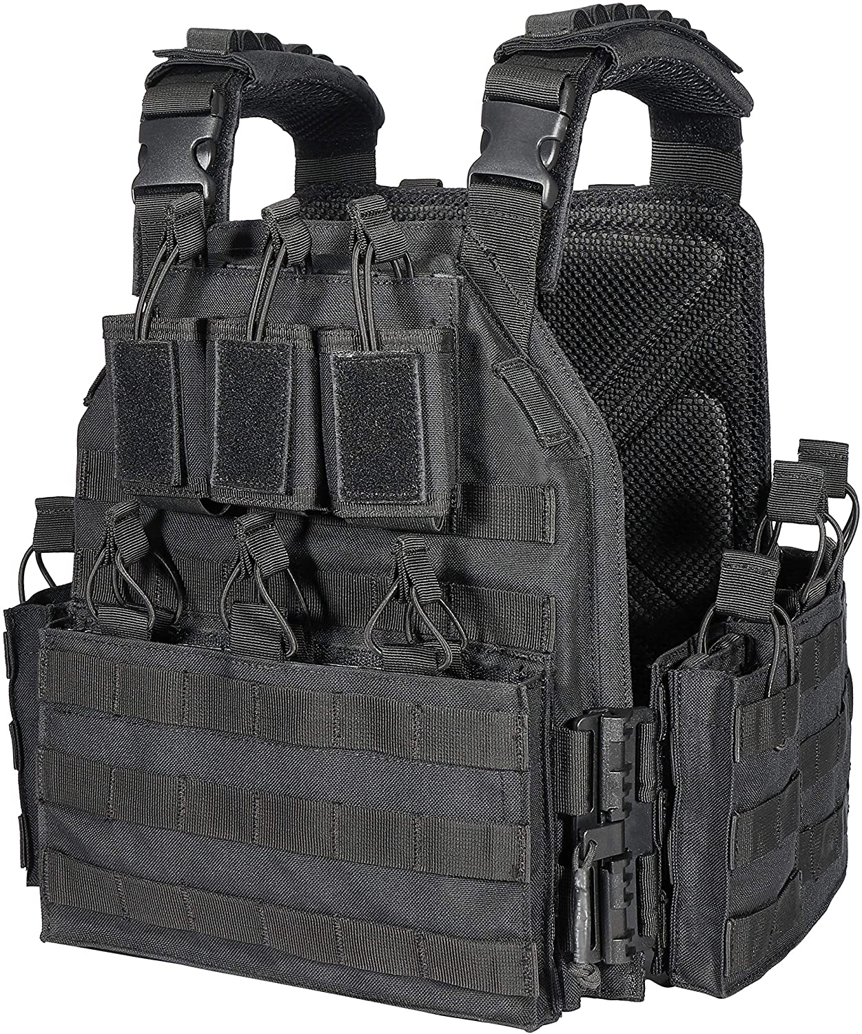 MOLLE Module System: 3” by 6” patch panels at the front and back for your name patches and morale patches, MOLLE all around for your pouches, equipment, hydration pack, etc.