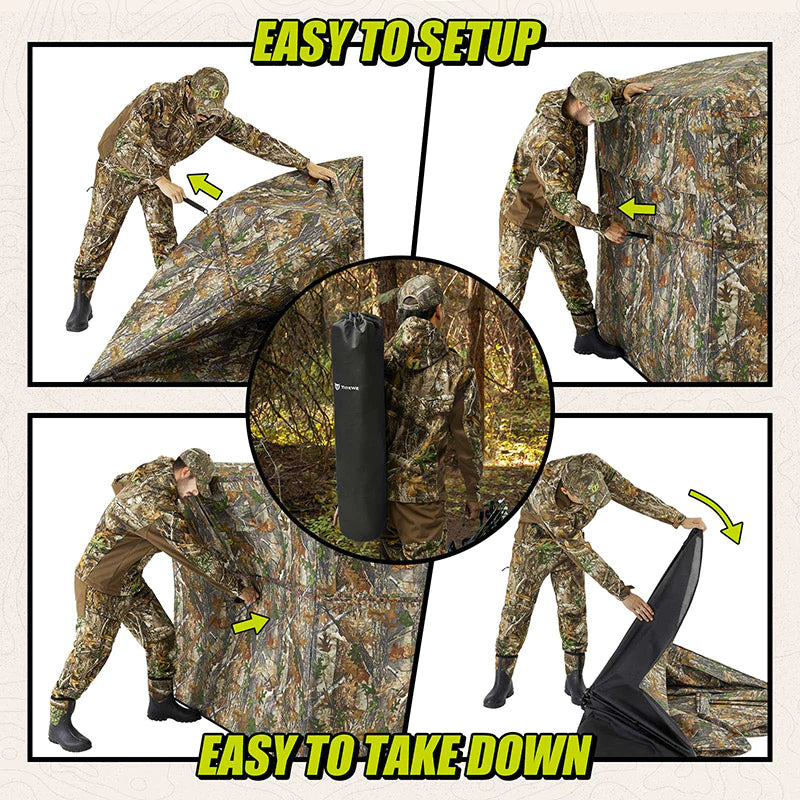 Easy to Carry & Assemble: Unique pop up design without a complex procedure, enables you to easily setup and take down the blind quickly. A lightweight portable carrying bag is also included with the blind. You can take the blind anywhere for deer hunting, turkey hunting, elk, and more.
