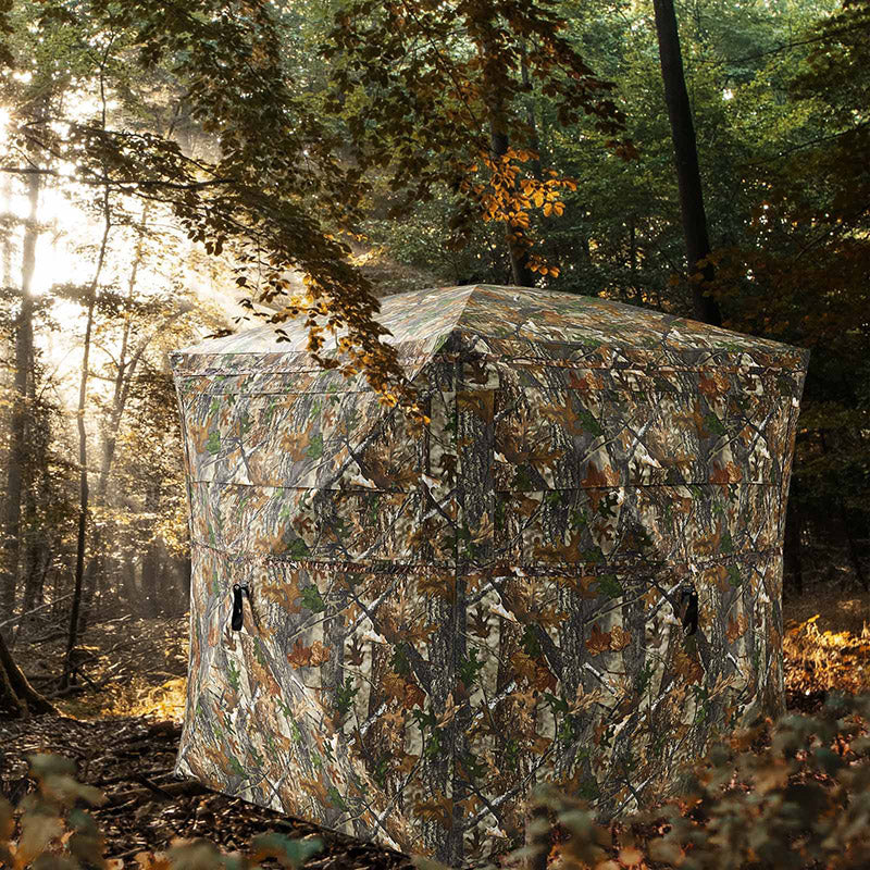 Unique Invisible Design: 2TACTIC hunting blind is equipped with three full panels of one-way see through mesh. This mesh delivers a 270-degree unobstructed wide view angle and allows hunters to see their surroundings.